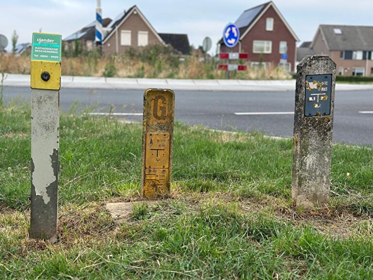 Controleer de locatie van de leidingmarkering aan de hand van de gebiedsinformatie. Meld afwijkingen via het kadaster.